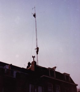 Nee beste lezers, het zijn niet de gekleurde pieten, destijds nog mooi zwart gekleurd, het waren de antennebouwers uit Kootwijk die indien ik in 2011 niet was gestopt om te werken voor KPN in 2011 nu mijn directe collega’s zouden zijn. In dit geval heeft het O.M. ze ingehuurd om dit mastje tijdelijk (zes uur) van mijn dak te verwijderen. Zes uur later stond hij er weer in zijn volle glorie.